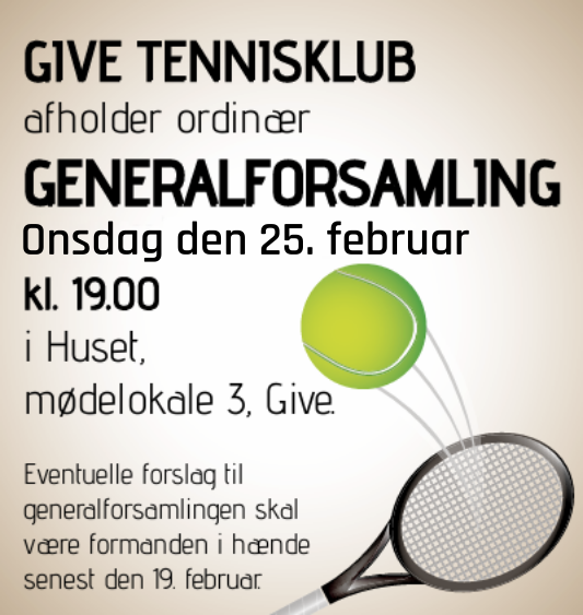 Generalforsamling Onsdag den 25. feb. 2026 kl. 19:00 i Huset, vel mødt🎾