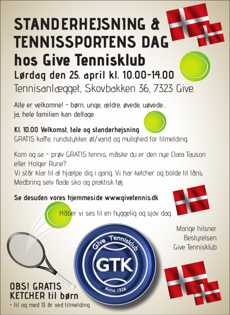 Vi glæder os til at se jer alle på banen den 27. april. Lad os sammen fejre tennissportens dag og starte sæsonen med masser af energi og spilleglæde🎾🌞!